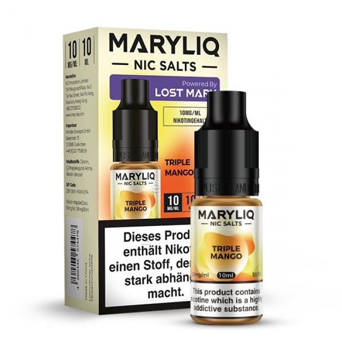 Triple Mango - MARYLIQ Nikotinsalz - Drei verschiedene Mangosorten vereinen sich zu einem intensiven, tropischen Geschmackserlebnis.